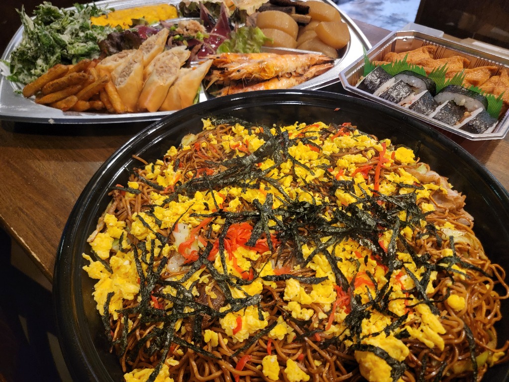 ピザやオードブル、焼きそばのテイクアウトを多数頂きました